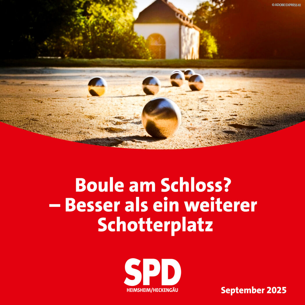 Die Heimsheimer Boule-Gruppe sucht seit längerer Zeit bei unterschiedlichen Gruppierungen Unterstützung für zusätzliche Boule-Bahnen im Bereich des Schlosshofs und war in dem Zusammenhang auch mehrmals in Kontakt mit der SPD. Die früheren Ideen hielten wir für unrealistisch. Den Standort am Backhaus fanden wir von Anfang an geeigneter als die anderen Ideen der Boule-Gruppe. Das hatten wir in den Gesprächen auch artikuliert.